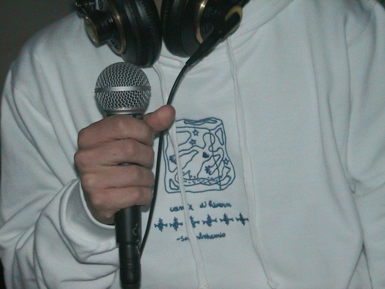 Dessuadora amb caputxa per Conte d'Hivern de Socunbohemio. Logo i dibuix cosit.